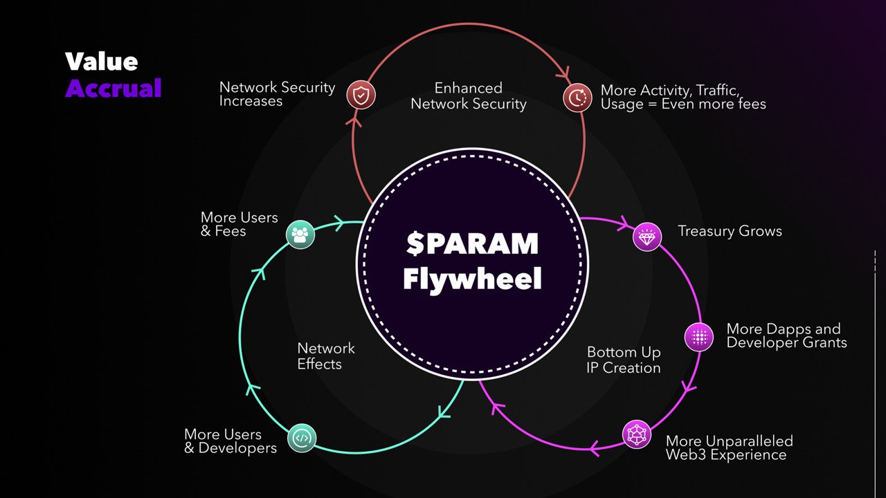 The value accrual flow demonstrates how our network effect is set to stimulate the economy around the $PARAM token.